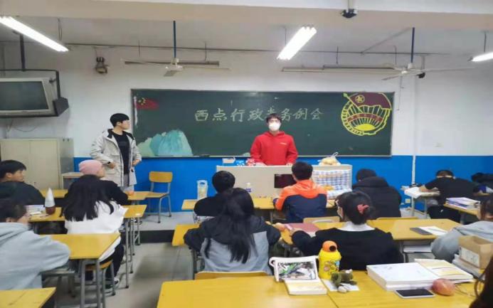 2021年11月16日西点军团于东教学楼230教室举办了“西点行政考务例会”会议,本次会议由孙奉伟、伊天睿、任天翔三位西点负责人及西点干事共同参与。大会主要内容有三点:细化西点行政纪律、推动西点月考考试改革、归纳总结工作中存在的问题。