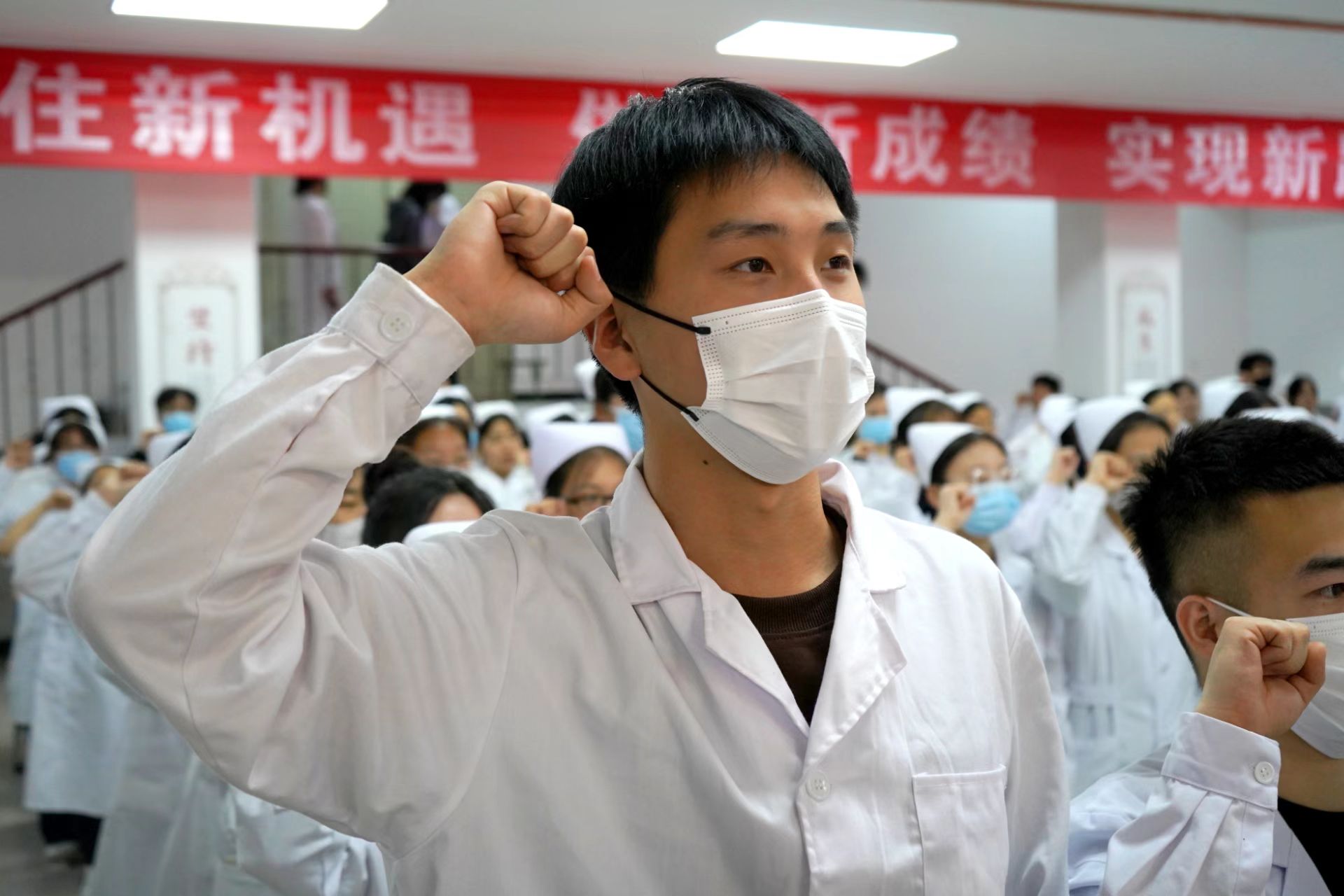 宣誓部分由护理专业刘春梅老师领誓,刘老师带领在场的全体同学,激昂宣誓,同学们将牢记今天的决心和誓言,用自己的真心、爱心、责任心对待所护理的每一位患者。