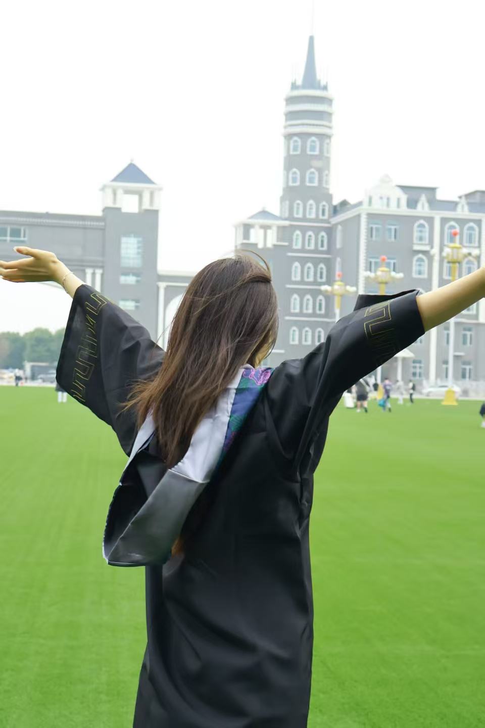 在河北外国语学院绿草如茵的校园里,一位身着学士服的女生张开双臂,背后是标志性的欧式建筑——这是2021级护理本科二班毕业生张雨薇的毕业定格。如今,她已蜕变为一名三甲医院的专业护士,用实际行动诠释了"学以精工,行以致远"的校训精神。